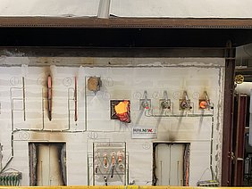 Neben den Fachvorträgen wurden in der großen Bauteilhalle des Brandprüfzentrums Erwitte ein Großbrandversuch (Wandaufbau 5x4m) mit in der Praxis auftretenden typischen Mängeln und Abweichungen unterschiedlicher Bauteile gepüft. Unter anderem wurde den Teilnehmenden sehr eindrücklich und anschaulich gezeigt, zu welchen Auswirkungen ein falscher Einbau von Brandschutztüren im Brandfall führen kann. Die Teilnehmenden konnten wertvolle Erkenntnisse und Einblicke über Brandprüfungen und Versagenskriterien erhalten.